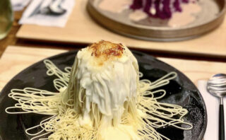 最後にカスタードクリームをかけ、ブリュレして提供されます。