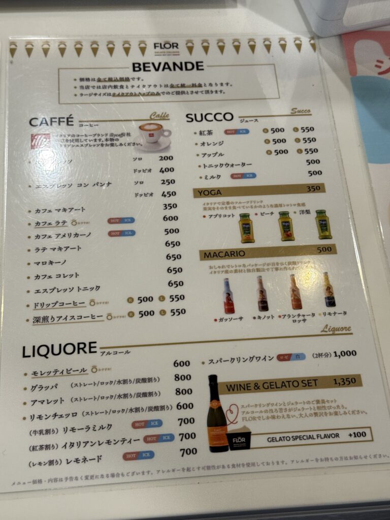 ジェラートのお店なので、イタリアのコーヒーなどが数多くあります。