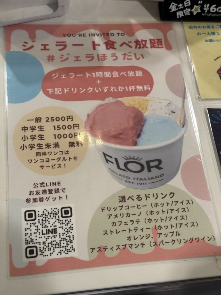 ジェラート食べ放題 2,500円(税込、大人)