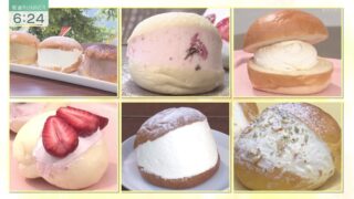 ブリオッシュ生地に、生クリームをたっぷりと挟んだクリームバーガーのようなビジュアルの食べ物。