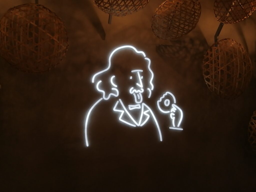 入口手前にはスタンディング席があり、アインシュタイン?のネオンサインがありここで写真を撮られている方も多かったです。