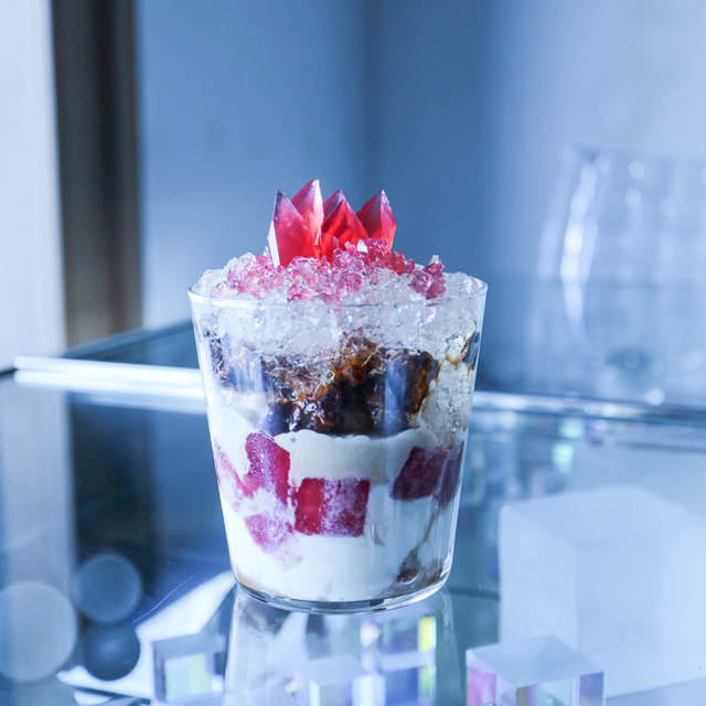 一番上にのっている水晶は寒天でできた錦玉羹で、プルプルの食感。
