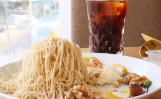店内でオーダーを受けてからしぼられるモンブランは定番のものに加え、芋やかぼちゃ、ほうじ茶などバリエーション豊かでほかにもパフェも食べられます!