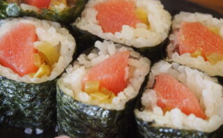 おしんこ巻きの上にどっさりと海鮮が盛られたビジュアル抜群のお寿司で、お店の人気メニュー。