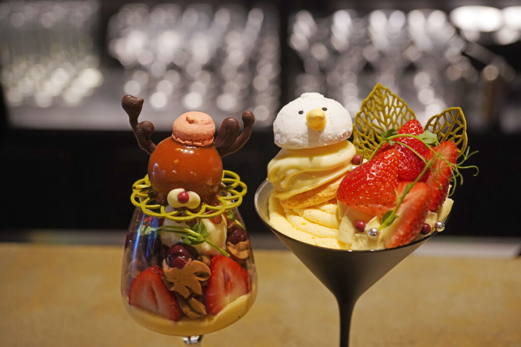 11月に伺った時はすでにクリスマス使用のスイーツになっていて、雪だるまやトナカイ、クリスマスツリーをモチーフにしたパフェ、苺を使った皿盛りデザートがありました。