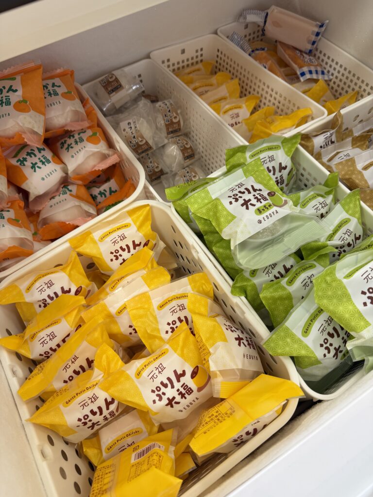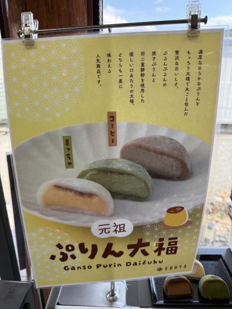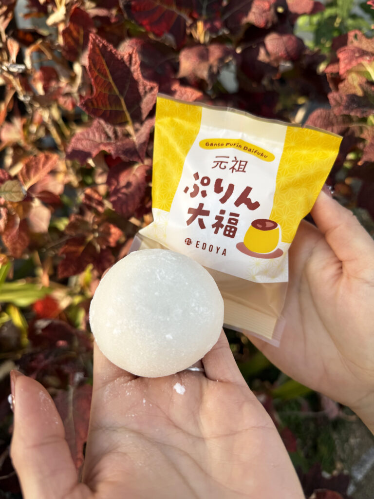 以前、催事出店店舗で今回は最近SNSで話題のぷりん大福をテイクアウト。