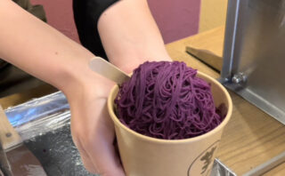 1mmという細さでしぼった紫芋のペーストは表面積が小さいことからとても濃厚な芋の風味が感じられます。