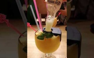 フルーツとフローズンが入ったグラスにコロナビールがビンごと入ったインパクト抜群のドリンク。