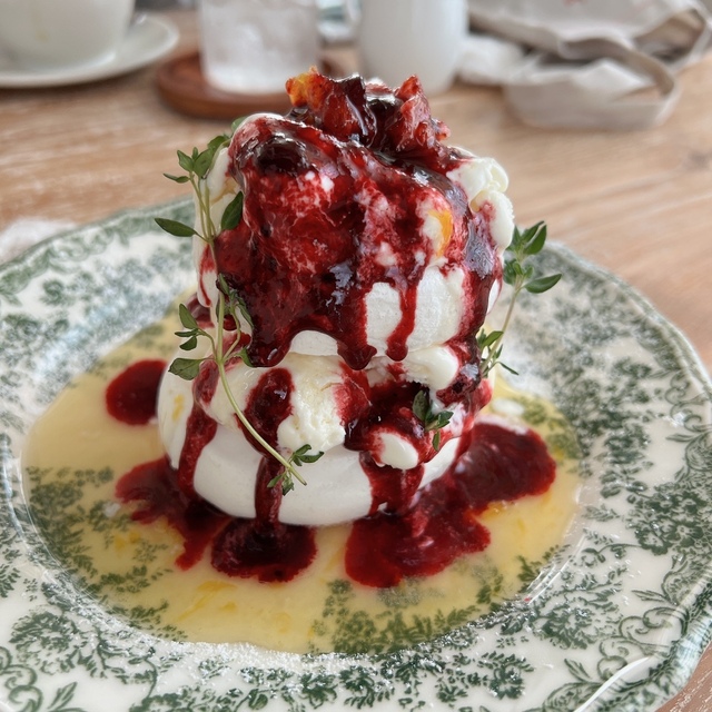 サクサクのメレンゲに旬のフルーツをたっぷりと使っていてとても食べやすいスイーツ、系列店は常に行列なので人気になる前に是非行ってみてください!