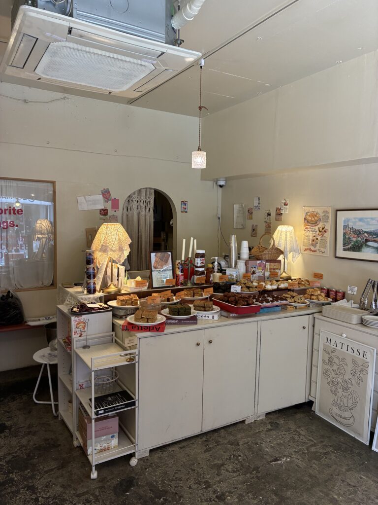 韓国カフェのデザインを適度に取り入れながら、まるでおしゃれな女の子のお部屋のような店内でイートインもできます。