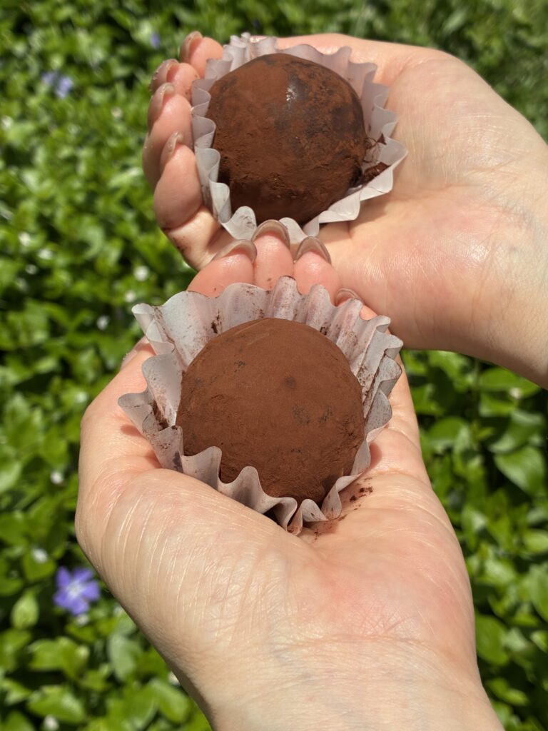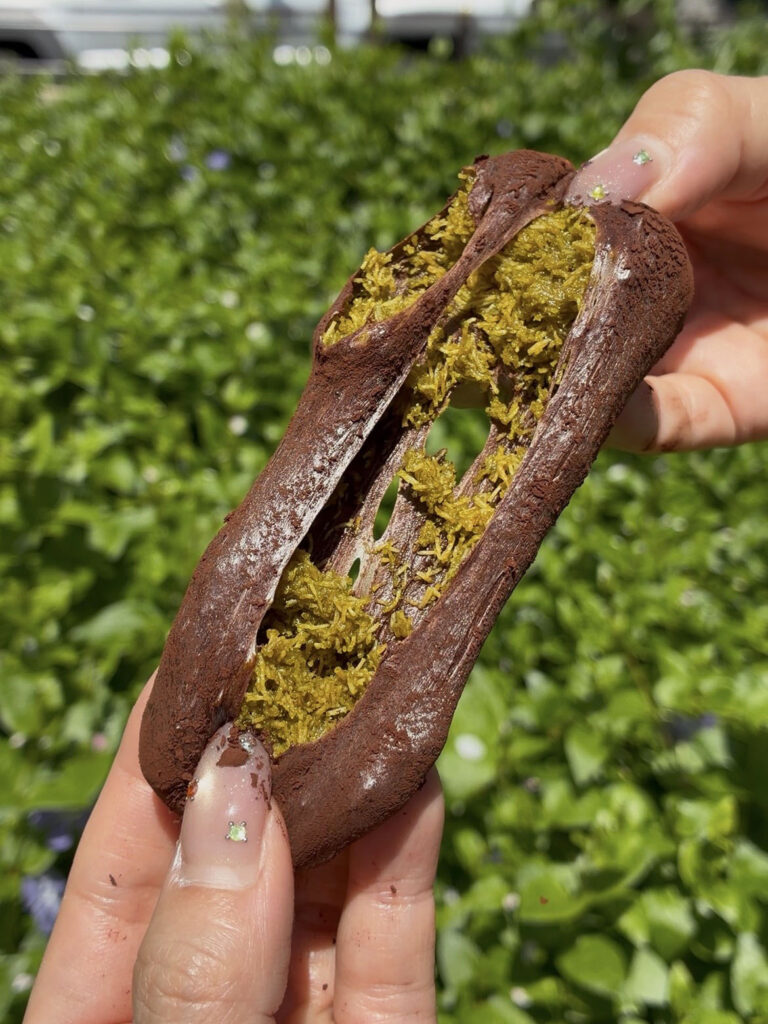 ピスタチオを練り込んだカダイフをマシュマロで包み込みココアパウダーをトッピング。