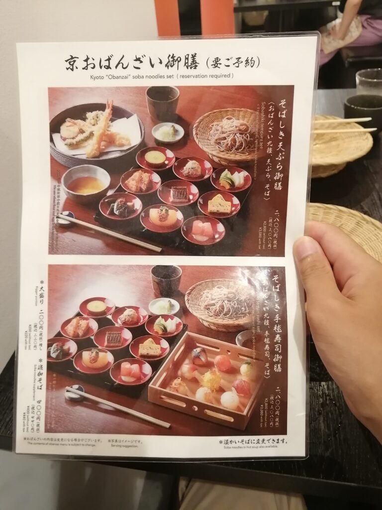 おばんざいと可愛い手毬寿司がそれぞれ9種類、そしてお蕎麦がついており、今回は温かいのにしました。