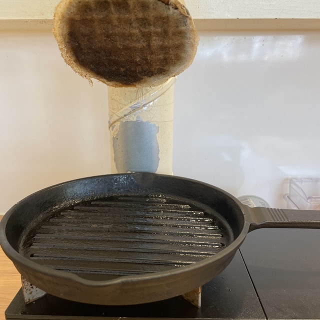 各席には一個ずつコンロとスキレットが置いてあり、焼き加減を自分で調整して好みの食べ方ができます。