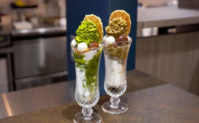 「清水一芳園カフェ 京都蛸薬師店」さんは、石臼挽き宇治抹茶を使ったパフェやかき氷が楽しめる「茶匠清水一芳園」さんが手掛けるテイクアウトもできるお店。茶臼一つから1日500グラムしか取れない宇治抹茶に、1キロ3万円の茶臼挽き宇治抹茶を使った濃厚なパフェが味わえるので抹茶好きの方には是非味わってみて欲しいです!
