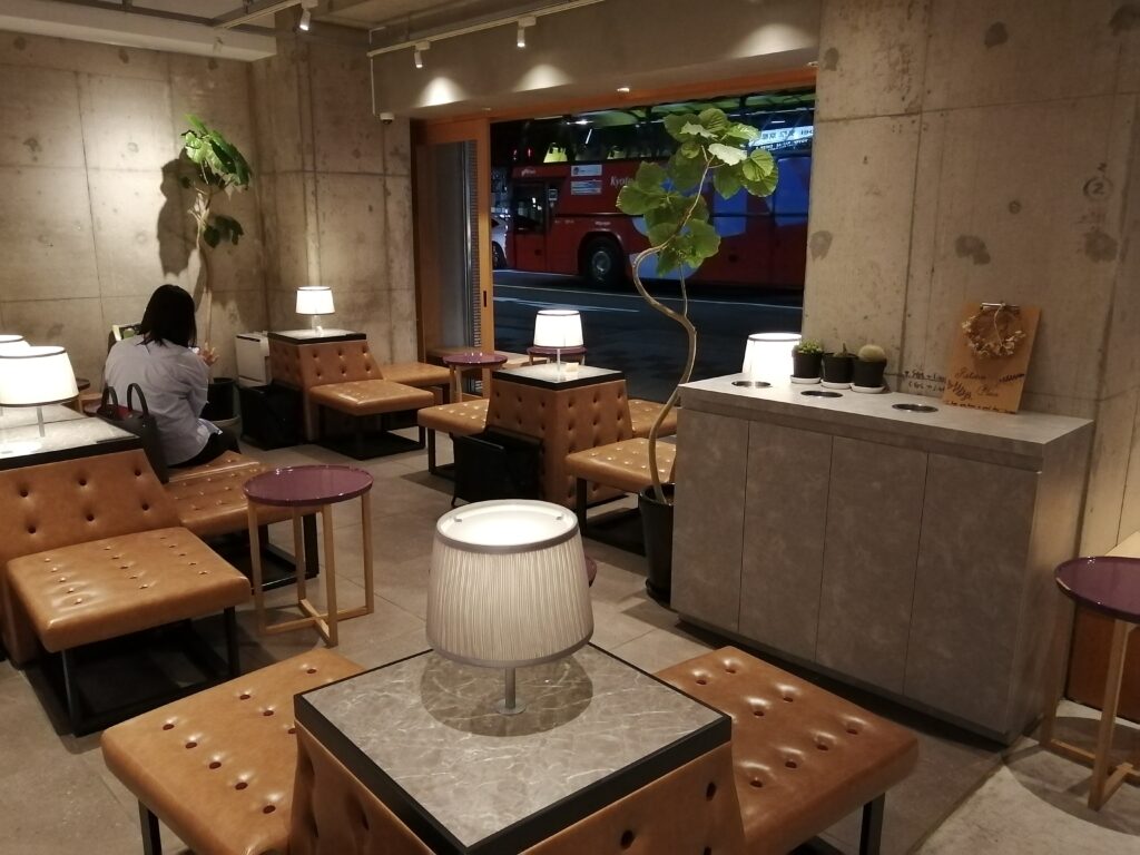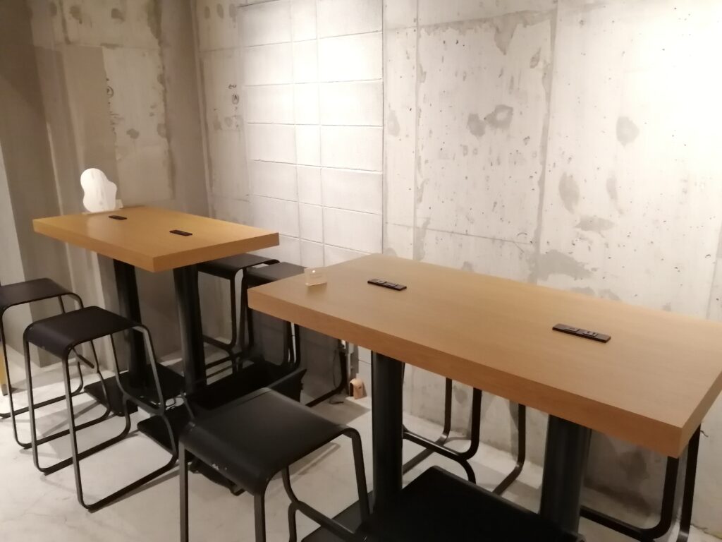 こちらは高さのあるテーブル席。各テーブルにはコンセントもしくはUSBコネクタが備え付けられているのは嬉しいですね。