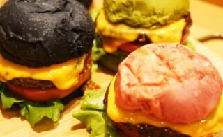 自分は緑のバンズのラクダ肉のハンバーガーを食べました。