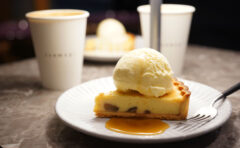 ふんわりデニッシュの上にかかったプリン味ソースは濃厚でひんやりバニラアイスとも相性抜群。