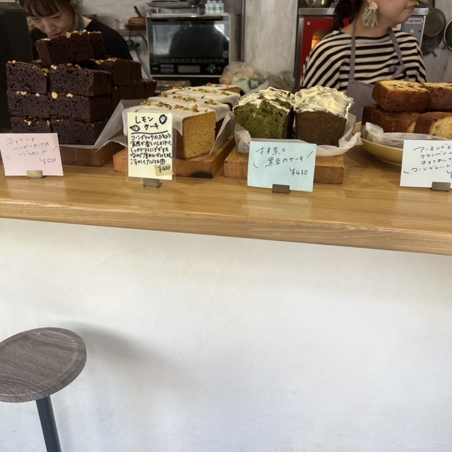 お店に入ると目の前にはレモンケーキやキャロットケーキ、フィナンシェなど様々な焼菓子が並んでおり、テイクアウトも可能。