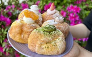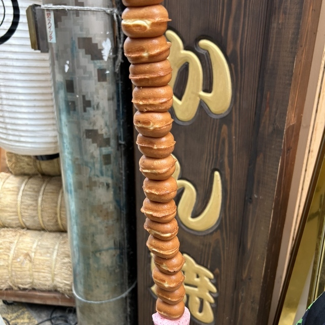 ベビーカステラを棒にさして通天閣のように見立てた食べ歩きグルメがインパクト抜群です!