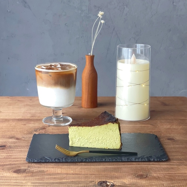 オーナーさんは眠気などを抑えるために研究し完成させたという糖質50%オフのバスクチーズケーキ。