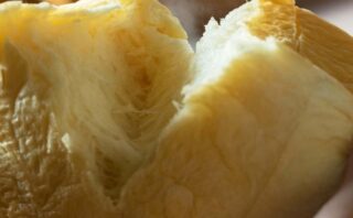 生食パンは、スイーツとパン作りの湯種製法をかけ合わせた、オリジナルのダブル湯種製法に加え、加水率80%以上を生み出すスチーム製法。