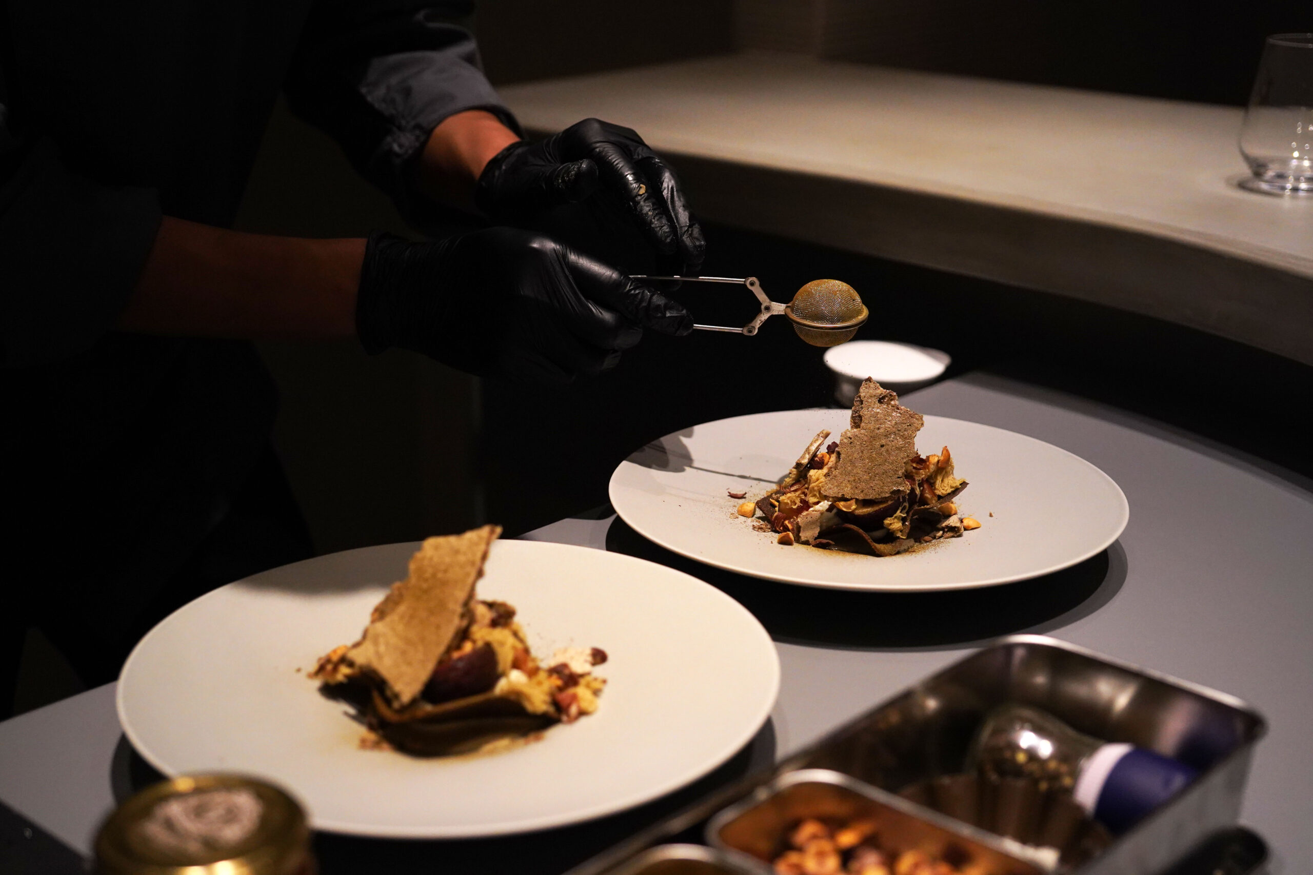 コースのスタートは和歌山県産の白イチジクはコンフィチュール、黒イチジクはドライにした状態、グリーンイチジクはカットしてフレッシュな状態で食べ比べ。