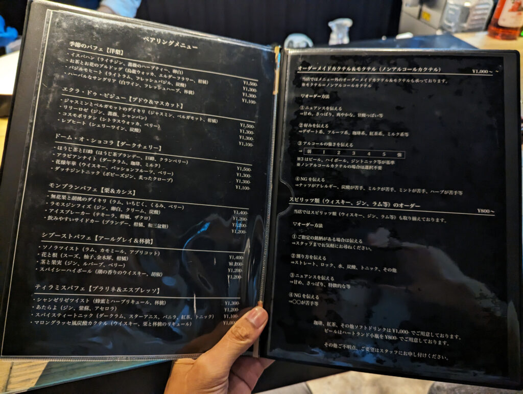 スイーツに合わせるペアリングドリンクもそれぞれ記載されています。