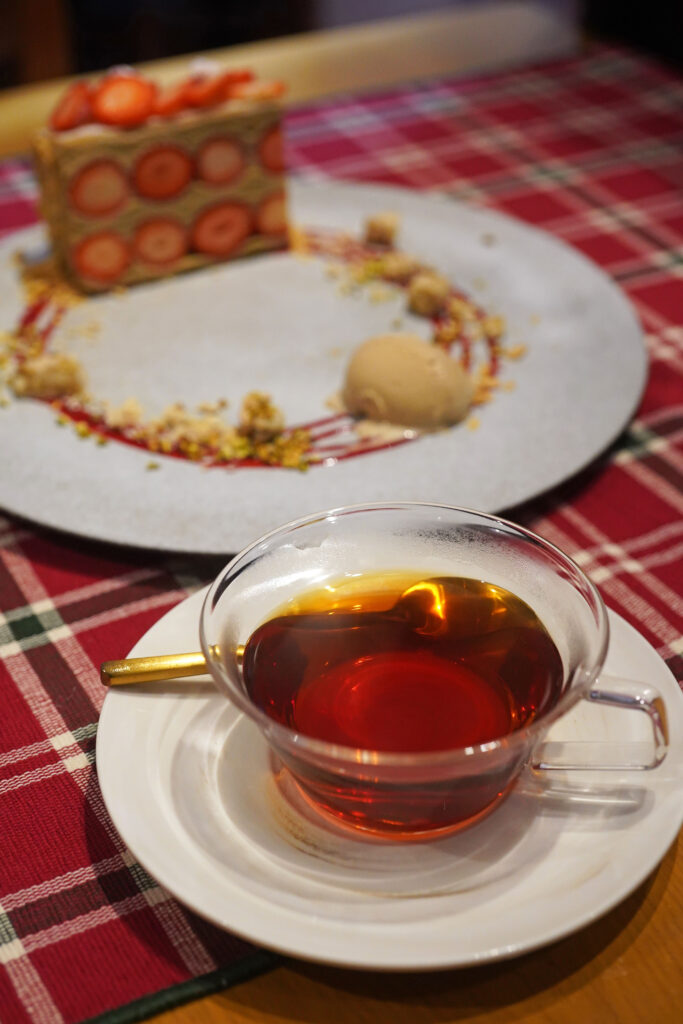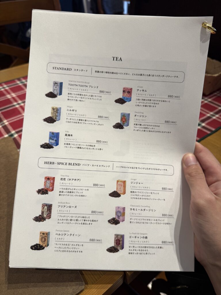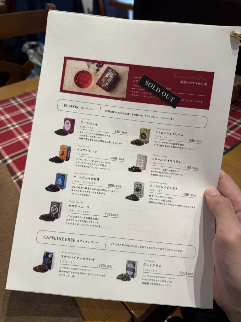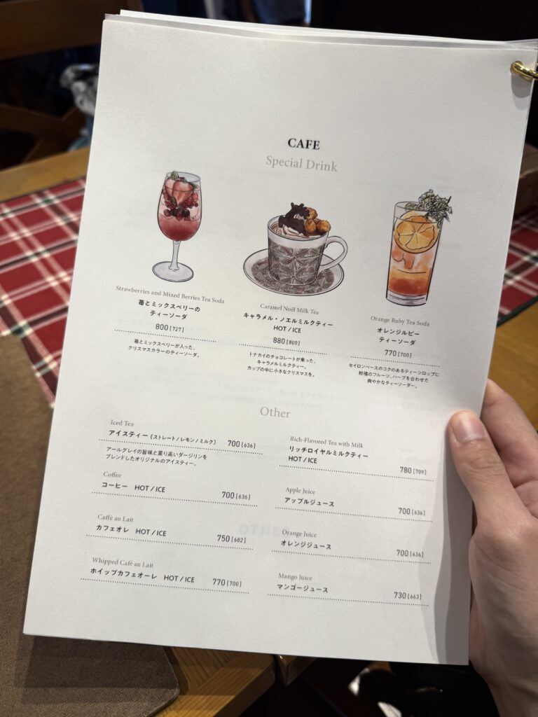セットドリンクもしく+料金でポットサービスの紅茶を付けられます。