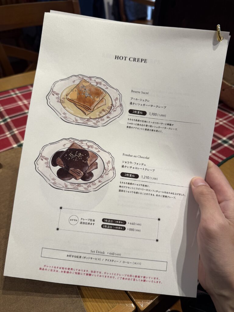 二人で行ったのでガレットとクレープそれぞれ注文。