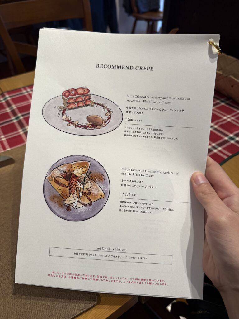 今回は冬苺の期間限定クレープを注文。
