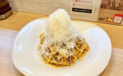 幅1~3ミリほどの細いロングパスタであるタリオリーニをカルボナーラソースで和えたパスタ。