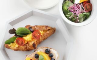 この日は、ふわとろエッグとさくさくロワッサン、生ハムといちご蜂蜜クリームチーズのくるみブレッドでした。