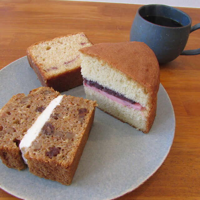 キャロットケーキに、ロールケーキやヴィクトリアケーキなどで、パウンドケーキとマフィンはテイクアウト可能。