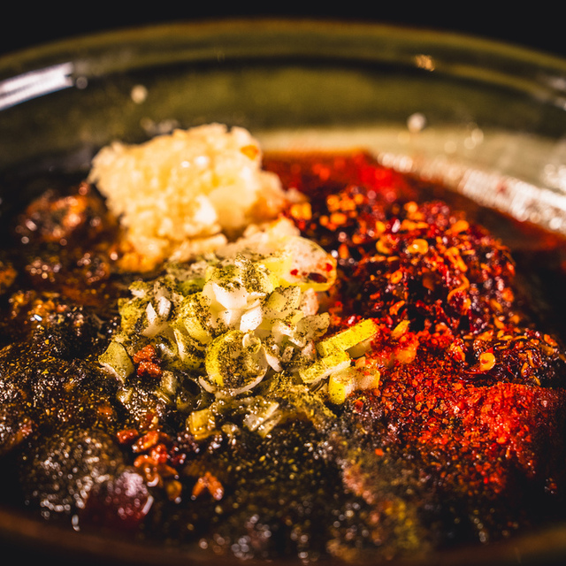 「すするか、すすらんか。 心斎橋店」さんは、豆板醤や甜麺醤、唐辛子など数種類の調味料を使用した麻婆豆腐ラーメンの専門店。