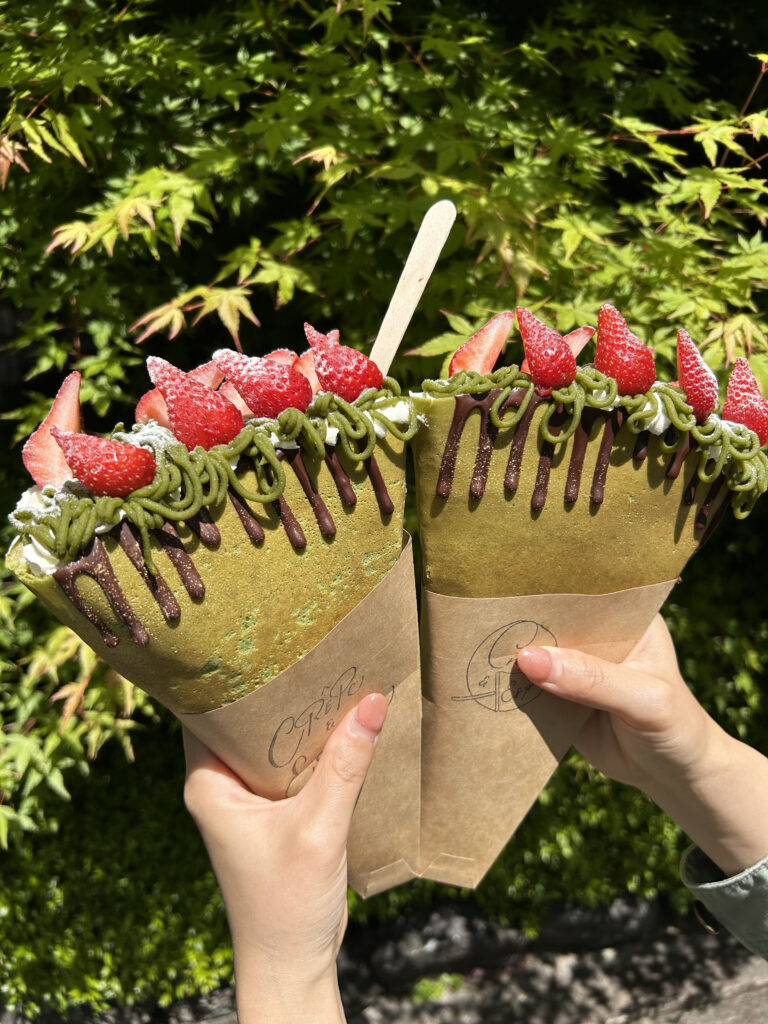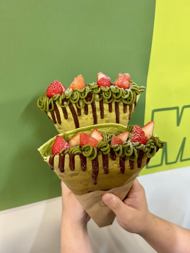 見た目だけでなく抹茶の旨みと苺の酸味を楽しめるちょっぴり大人なクレープでした。