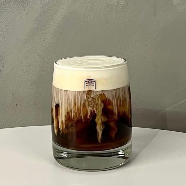 コクのあるアメリカーノの上に塩クリームがのった芸術的なラテ。