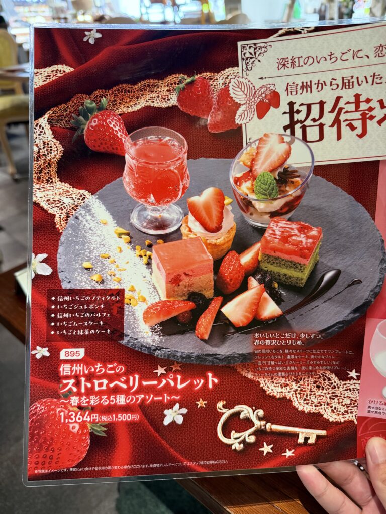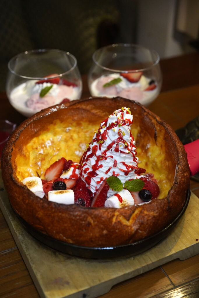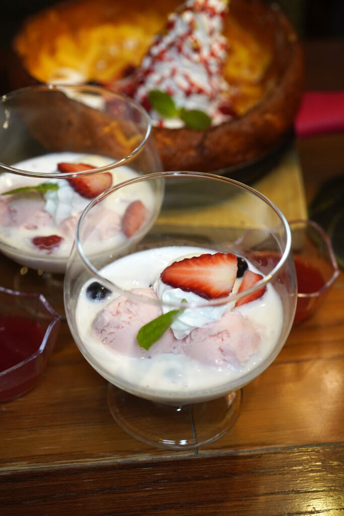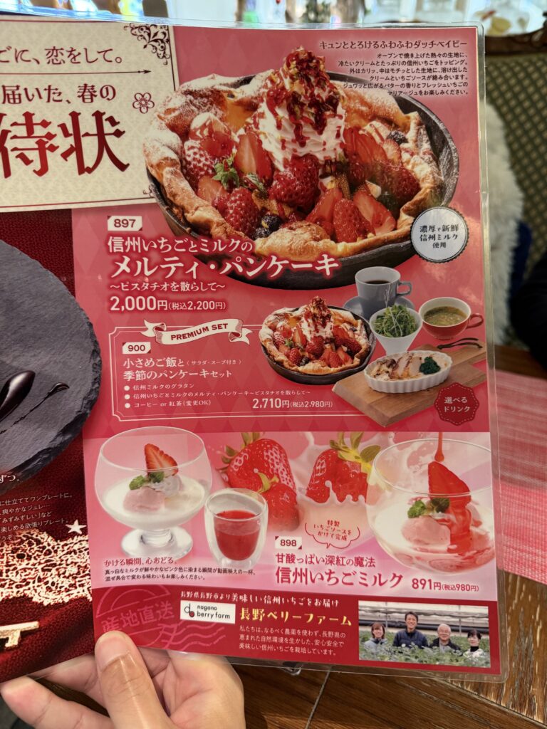 こちらが信州苺を使ったスイーツメニューでプレートにダッチパンケーキなどがありました。