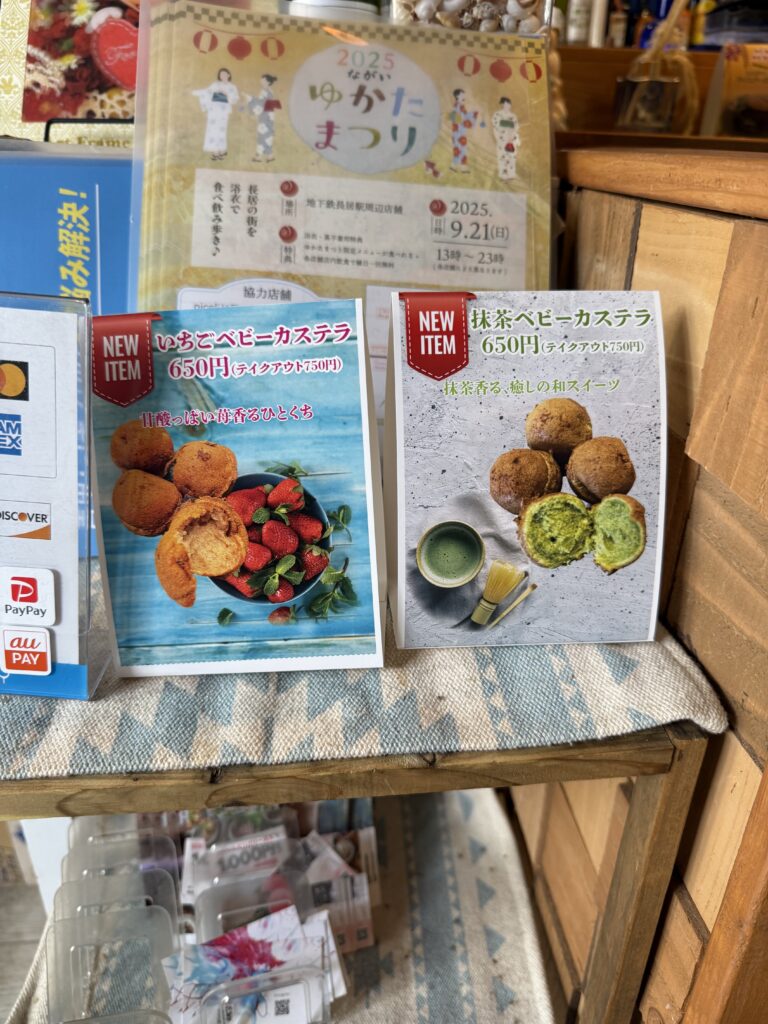 2025年8月に再び訪れた時には抹茶やいちごベビーカステラが登場していました。