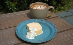 表面はほぼ苦さはなく、外周部分はしっとりと一般的なバスクチーズケーキとは違ったものになっていました。