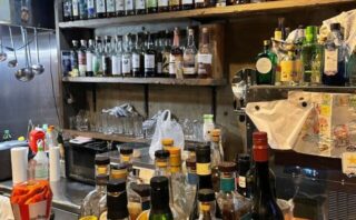 スタンド席の奥の棚にはたくさんのお酒が置いてありました。