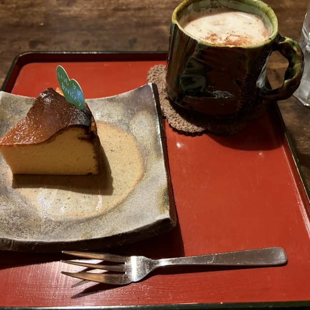 看板メニューのバスクチーズケーキとドリンクを注文。