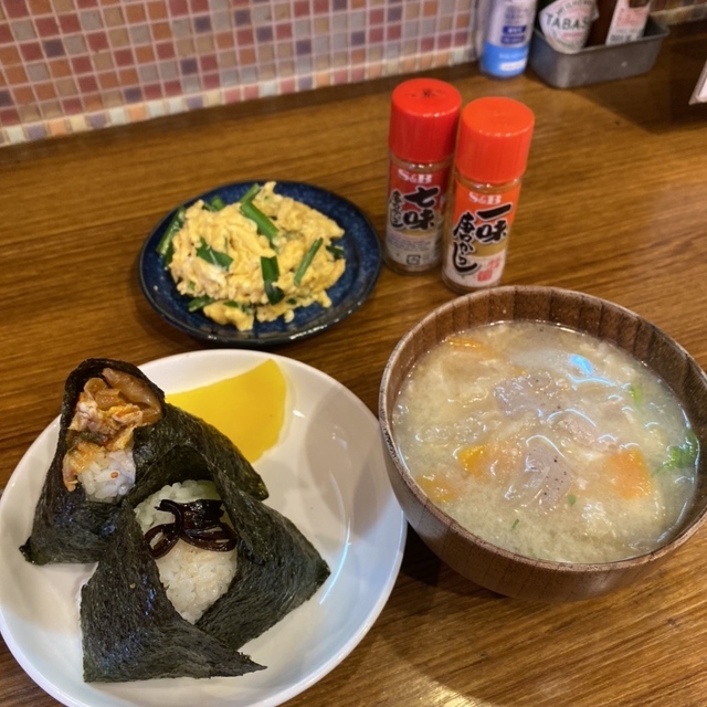 具材たっぷりの豚汁、熱々でおむすびのお供として最高でした。