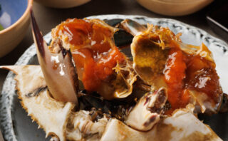 国産の渡り蟹を塩、漬け込みダレに漬けて熟成させた料理でこちらでは20種類ほどのフルーツも使用。