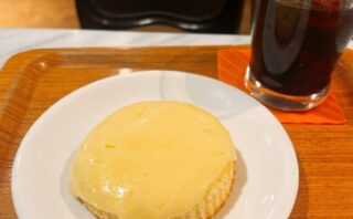 スポンジ生地の上にデンマークチーズをのせ焼き上げたケーキ。