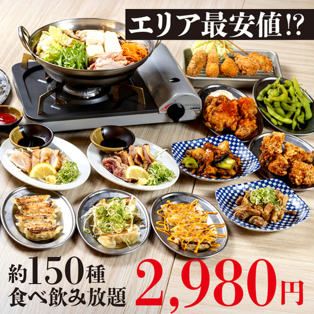 「焼鳥 餃子 とり金 神戸三宮店」さんは、鍋や餃子、焼鳥の食べ放題が2,980円からで楽しめる居酒屋。
