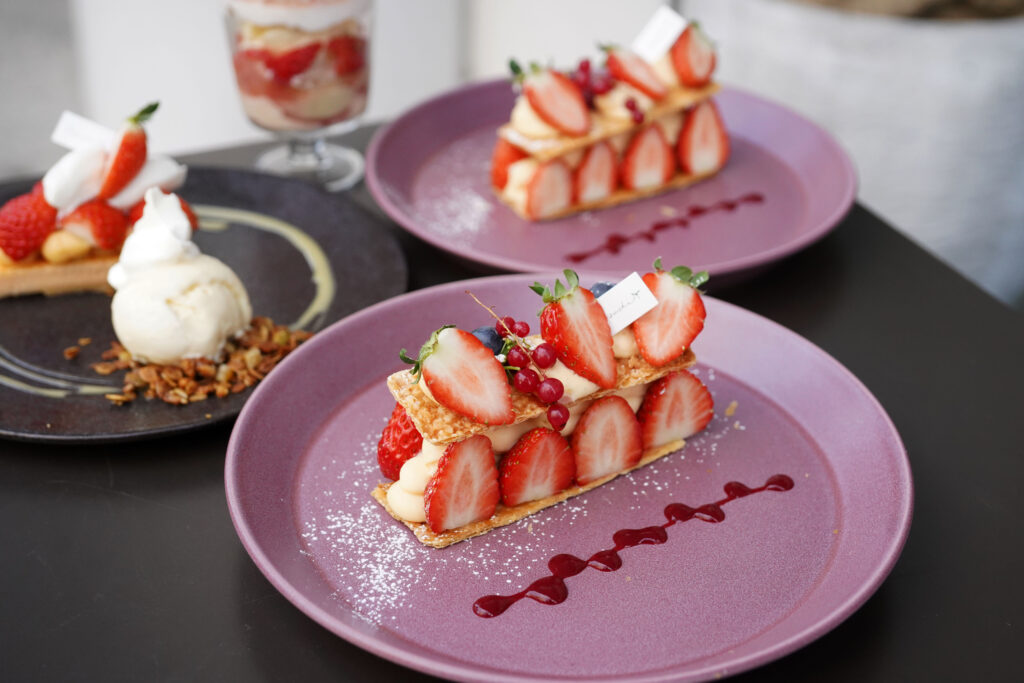ミルフィーユにパフェ、タルトと様々ないちごスイーツが揃います。