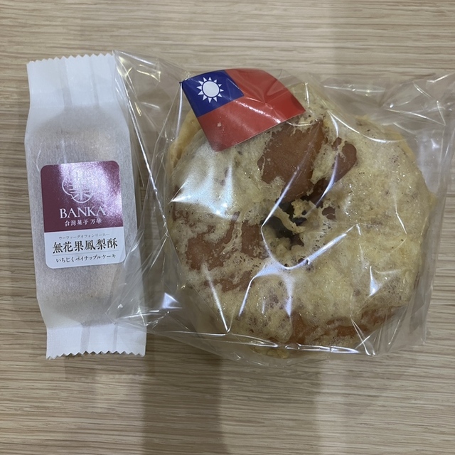 プレーンの他にチョコレートカステラ、新作台湾パインエッグタルト台湾パインエッグタルトをテイクアウト。