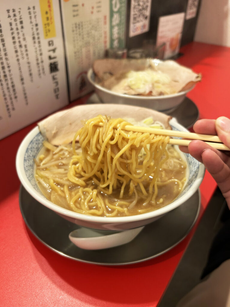このスープが北海道展の催事でもよく見かける「森住製麺」さん中太卵縮れ麺に良く絡まっていました。