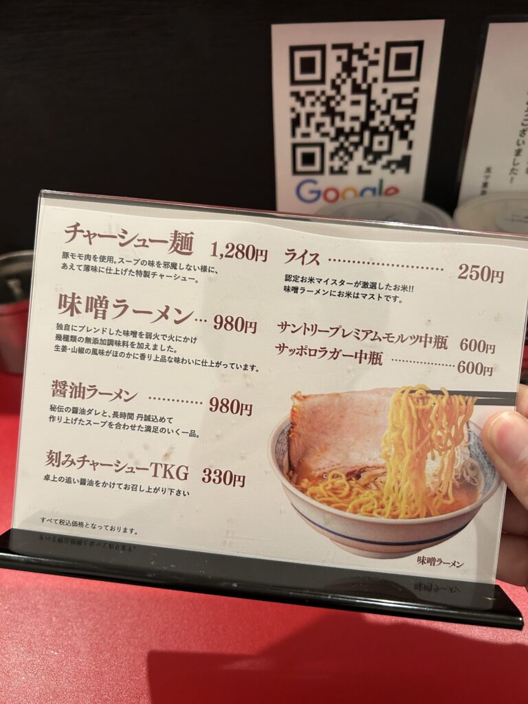 味噌ラーメンの他には醤油ラーメンもあります。