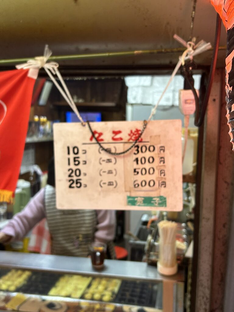 たこ焼きは10コから販売、5コ増えるごとに100円ずつ増えていきます。